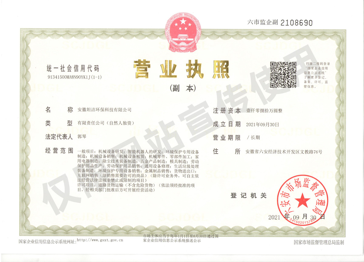 陇南安徽坦洁环保科技有限公司营业执照